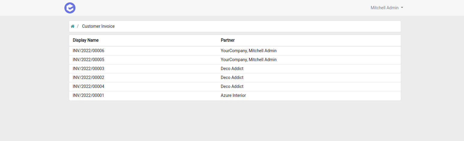 After creating this portal record, go to my portal you will see new menus as 'My Leaves' and 'Customer Invoice'.