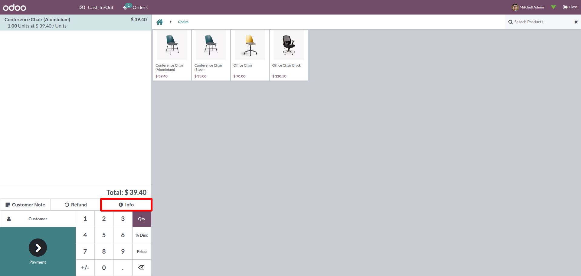 After making Hide Product Info boolean as true, you will see the Info button hided in POS session.